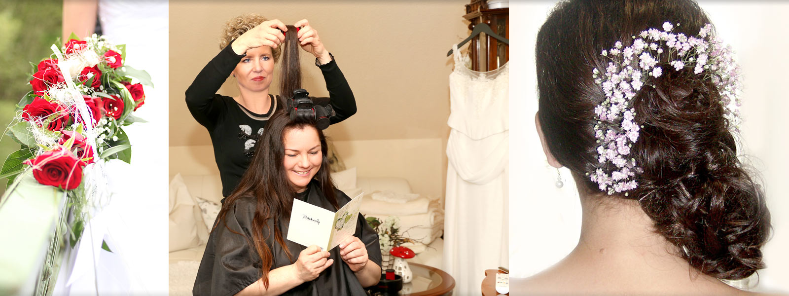 Der Tag soll zum unvergesslichen Erlebnis werden, die Braut zur schönsten aller Frauen. Damit Sie am wunderbarsten Tag Ihres Lebens zum strahlenden Mittelpunkt werden, stehen wir Ihnen in unserem Salon dabei mit Rat und Tat zur Seite.